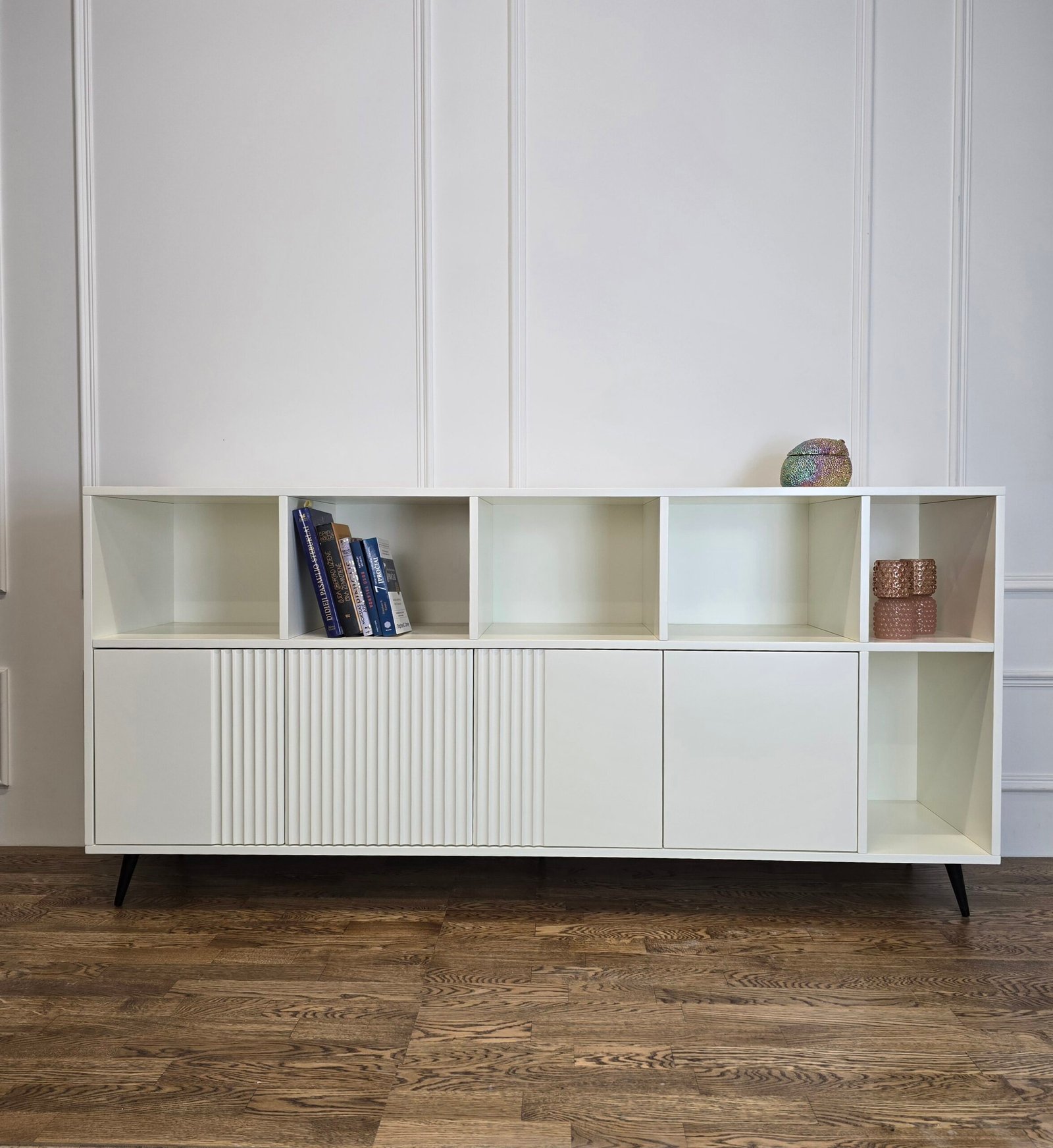Komoda „Knygynas“ – tai baldas, kuriame dera modernumas, funkcionalumas ir vizualinis lengvumas. Puikus pasirinkimas tiek knygoms, tiek mėgstamiems aksesuarams eksponuoti.