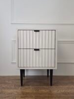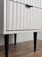 Lovos staliukas „Kubikas“ – tai rafinuotas baldas su charakteringu vertikaliu raštu ir kontrastingomis kojelėmis. Šis staliukas puikiai dera šiuolaikiniame interjere, suteikdamas jam struktūros, aiškumo ir subtilaus ritmo.