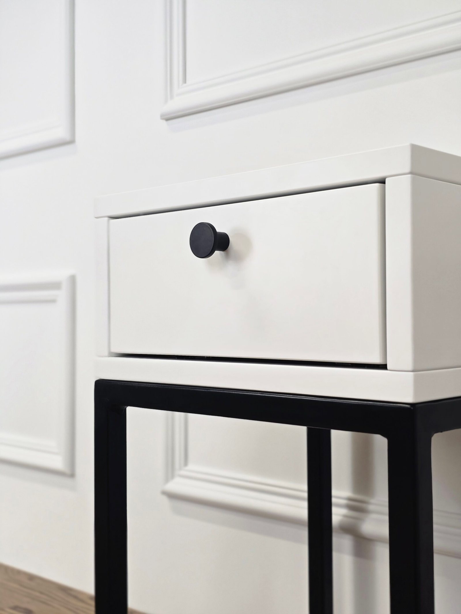 „Mažytė“ – tai minimalistinis lovos staliukas, skirtas tiems, kurie vertina paprastumą, lengvumą ir subtilų dizainą. Aukštos, kontrastingos kojelės suteikia baldui vizualinio lengvumo, o unikalus atsidarymo mechanizmas paverčia jį išskirtiniu.